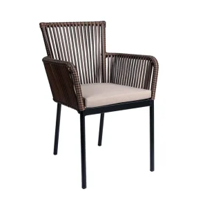 Este asiento cuenta con una envoltura de polipropileno y patas de aluminio anodizado de Ø25 mm. Es apto para uso en interiores y exteriores, cuenta con brazos y es apilable.