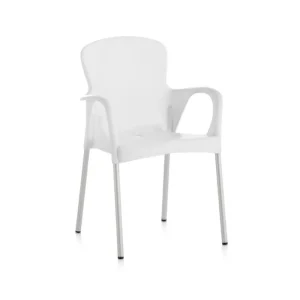 La silla de exterior OLA, de diseño italiano, es una pieza elegante y cómoda con una apariencia moderna ideal para cualquier ambiente. Debido a su estructura en polipropileno y patas de aluminio anodizado que facilita el apilamiento, es adecuada tanto para interiores como exteriores.